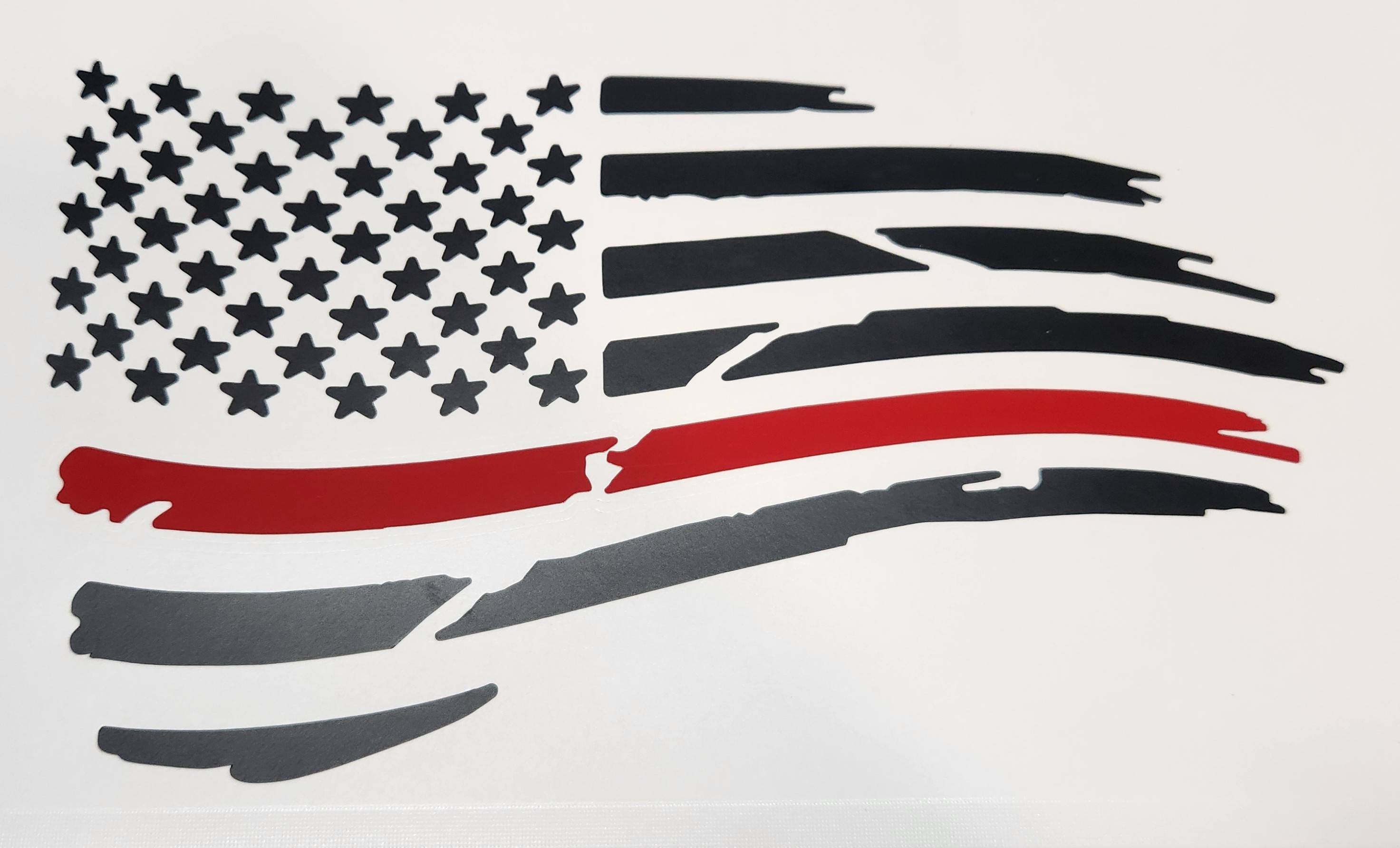 Distressed USA flag vinyl decal w/ a TINE LINE. 'Thin Line' is meant to be a line of danger which public servants willingly cross for the greater good of society